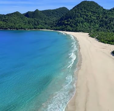 A long stretch of soft grayish-white sand, gentle waves, and crystal-clear waters. Perfect for sunrise watching, swimming, or simply enjoying a peaceful walk along the shoreline.